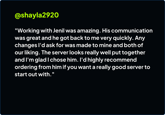 Hi, I'm Jenil - I'm a freelance discord server builder and thumbnail designer based in India.In 2019, I made my first Discord server for a friend who just started his YouTube journey and was looking for a Discord community where he could stream games and chill with his friends. At that time, I didn't know how to make a support ticket system, how to setup auto notifications for streaming, or how to make the server easy to use. Basically, I didn't know anything about Discord except how to create channels.At that time, there were fewer tutorials, so I had to learn everything from scratch by watching YouTube tutorials, reading long documentation, and experimenting with trial and error. With uneven breaks in-between and working on unfinished projects, I made my first Fiverr account in 2022. Within a month, I got my first order which was for $10 and the buyer loved the server so much that they gave me a tip. After this, I was so happy that I can't describe it in words.And today, here I am working as a full-time Discord server builder. Some of my favorite projects in the journey were making a community server for Motionize Productions, TrendyToons, and RushRacingLeague. I don't just make Discord servers, I build communities that succeed.